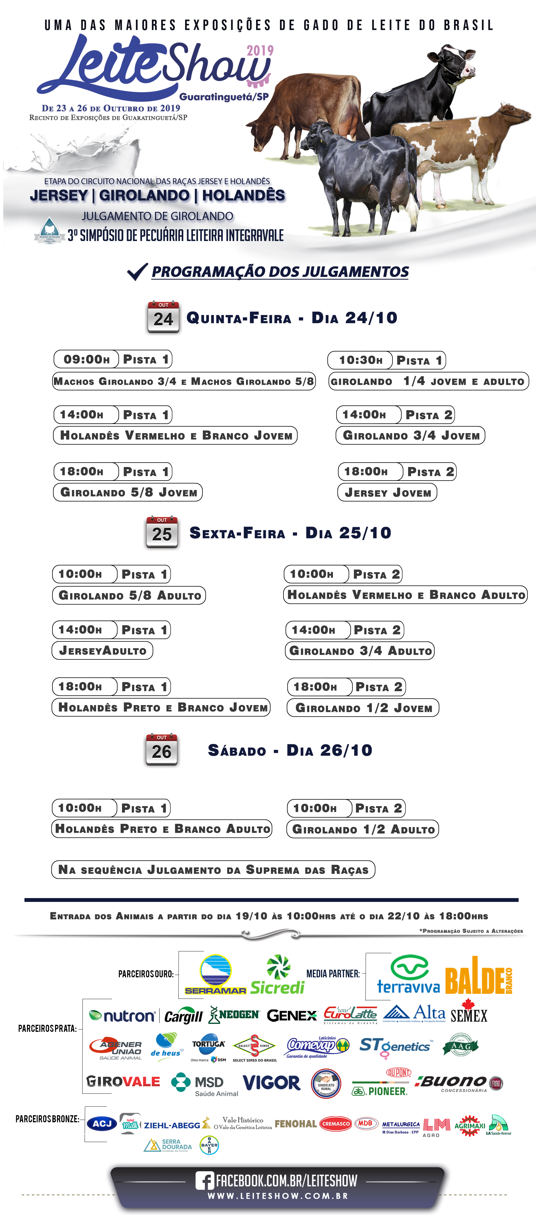 Confira abaixo a Programação dos Julgamentos e do Torneio Leiteiro